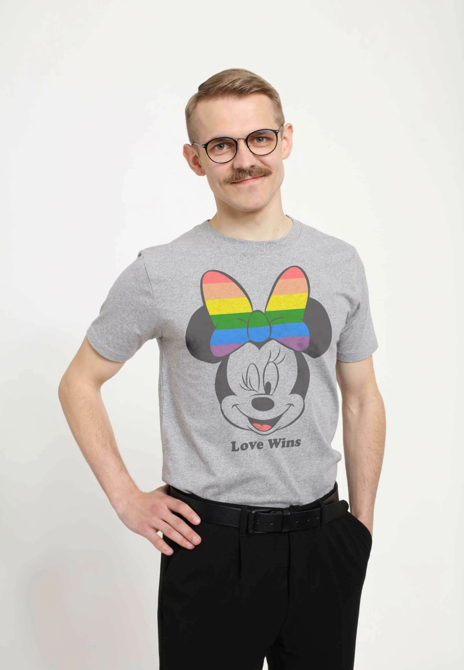Disney Mickey Classic Love Wins Unisex – T-Shirt Print – Melange Grey