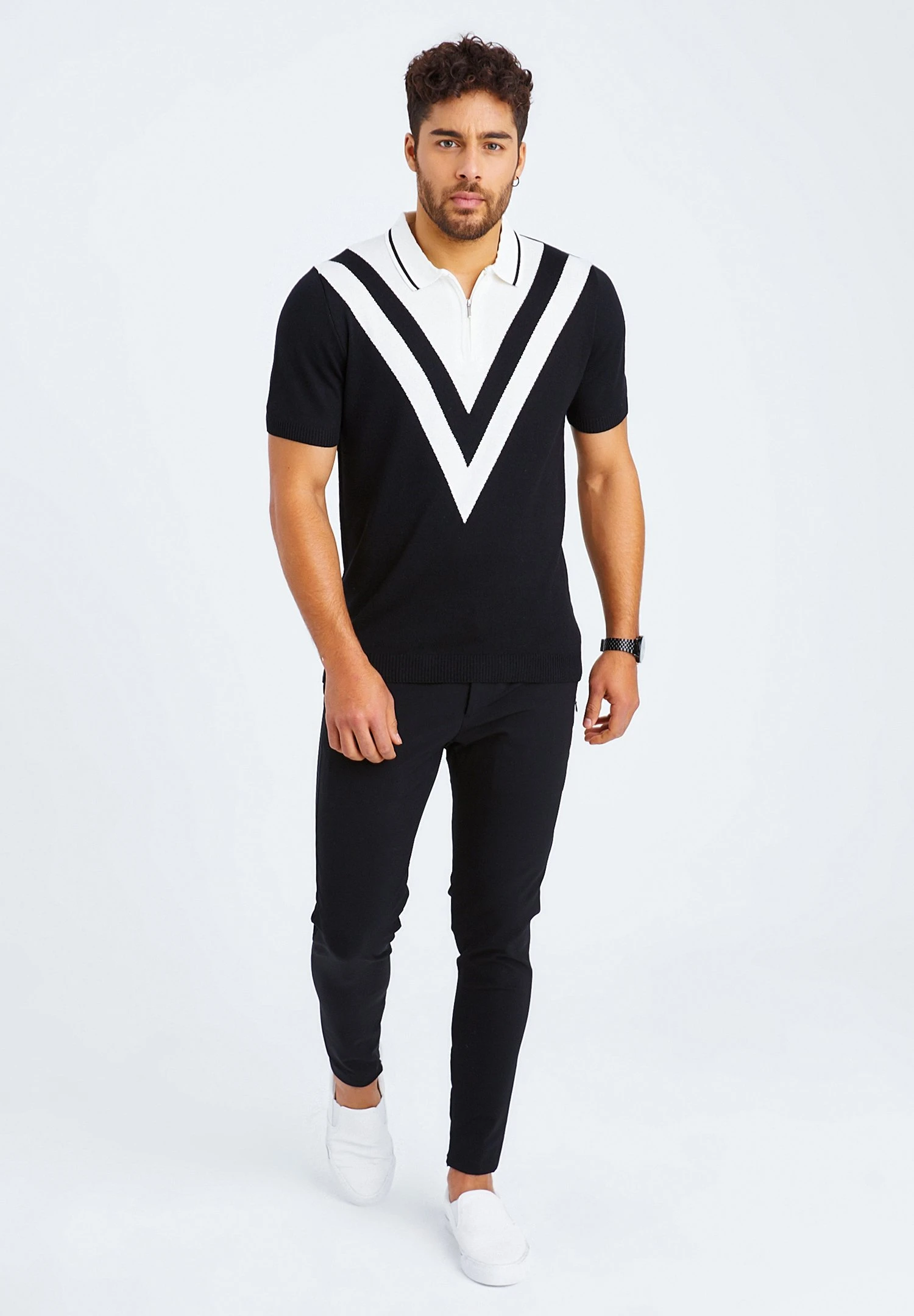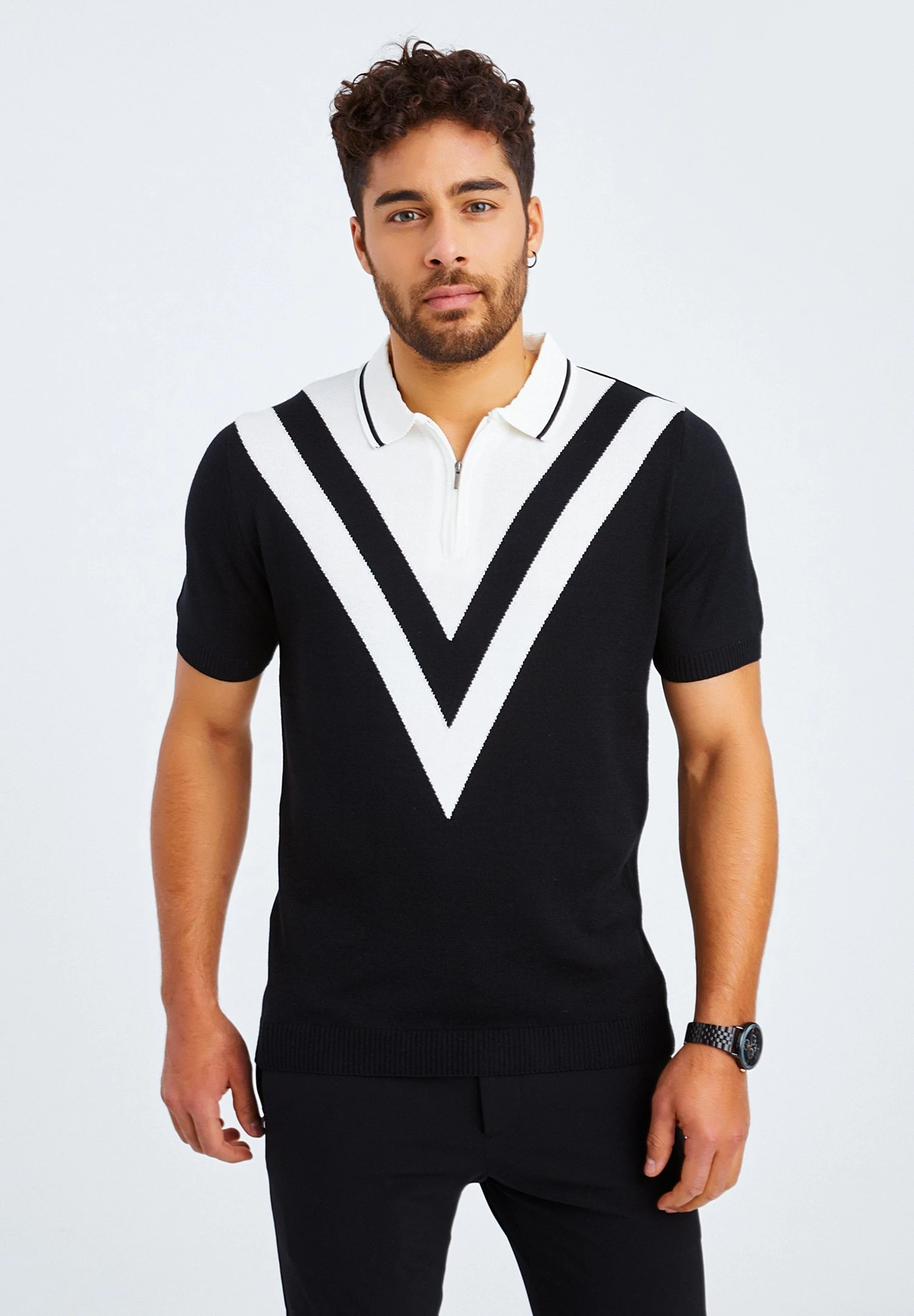 Fein – Poloshirt – Schwarz-Ecru